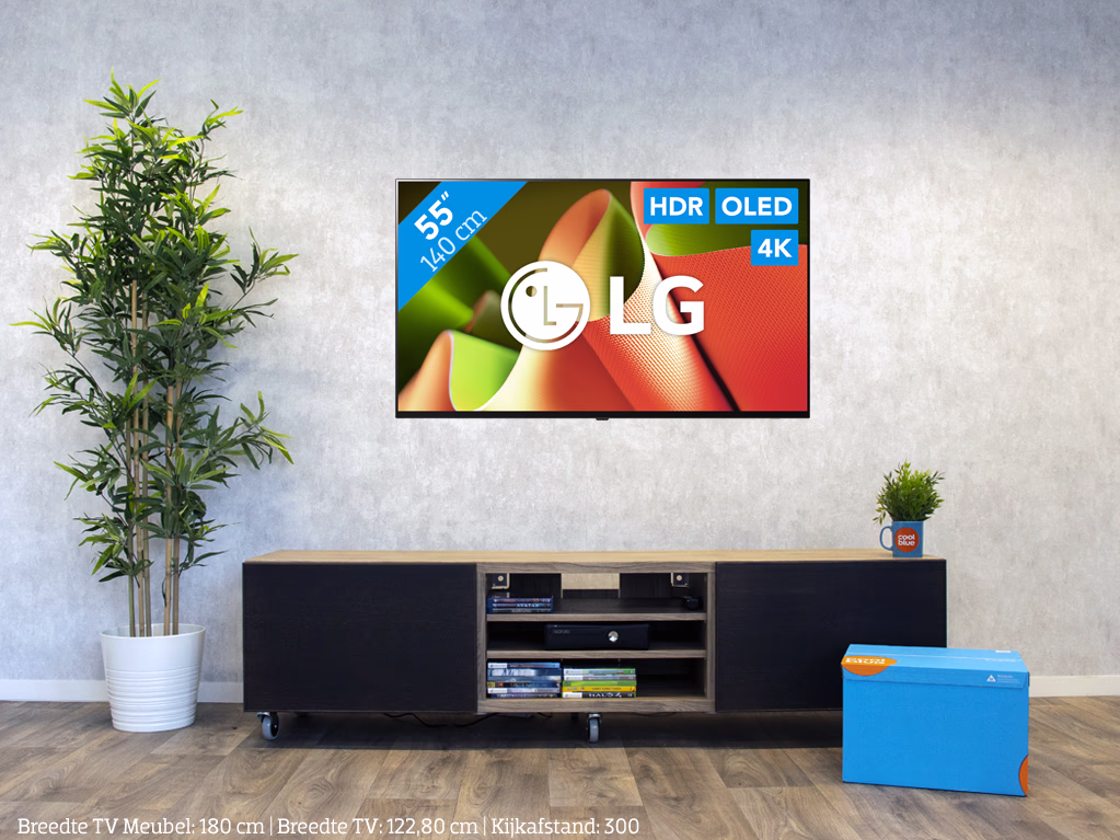 De LG smart tv OLED 4K B4 (2024) biedt haarscherp beeld, Dolby Vision en HDMI 2.1. Perfect voor films, sport en gamen in jouw woonkamer.